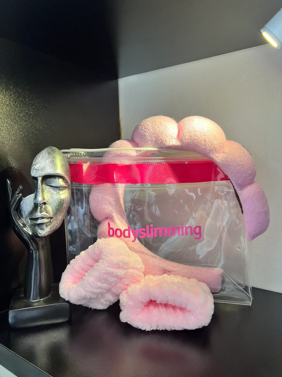 Il Kit Skincare Viso è l’accessorio perfetto per rendere la tua routine di bellezza più comoda ed efficace, sia a casa che in istituto. Include un cerchietto morbido e due polsini coordinati, pensati per: